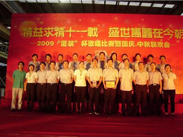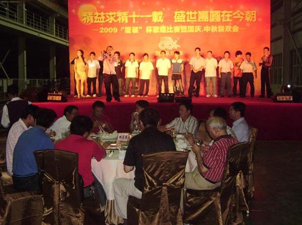 為喜迎“國(guó)慶·中秋”雙節(jié)的到來(lái),慶祝廈裝公司成立11周年,廈裝公司于2009年9月29日舉行了規(guī)模盛大的“國(guó)慶·中秋”大聯(lián)歡活動(dòng)。此次活動(dòng)包括“歌唱祖國(guó)”歌唱比賽、頒獎(jiǎng)儀式、文藝表演、中秋晚宴、中秋博餅等幾個(gè)環(huán)節(jié)。